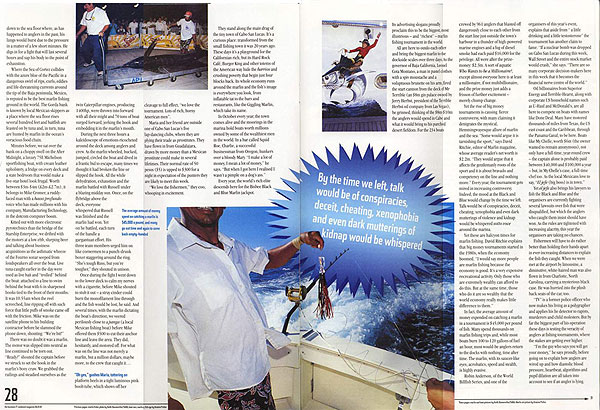Yet at the time of writing Wayne Bisbee has been served with another writ and some locals in Cabo have vowed the tournament will never be held there again. “We were robbed,” says Bob Hunt, a hotel developer from the disqualified Minerva team. Yet Wayne Bisbee is apologetic but holds the line that rules are rules. “I’ve always liked underdogs and we’ve had a lot of underdogs win this tournament. But there was no intent on their part to cheat – they just violated the rules.”